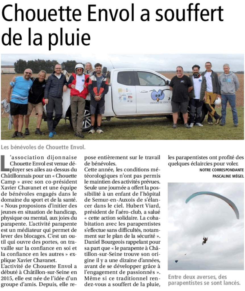 Semaine de pluie et de vent pour Chouette Camp fin août. Malgré cela, les enfants de l’hôpital de Semur ont pu effectuer des vols avant que le vent ne trouble la fête.